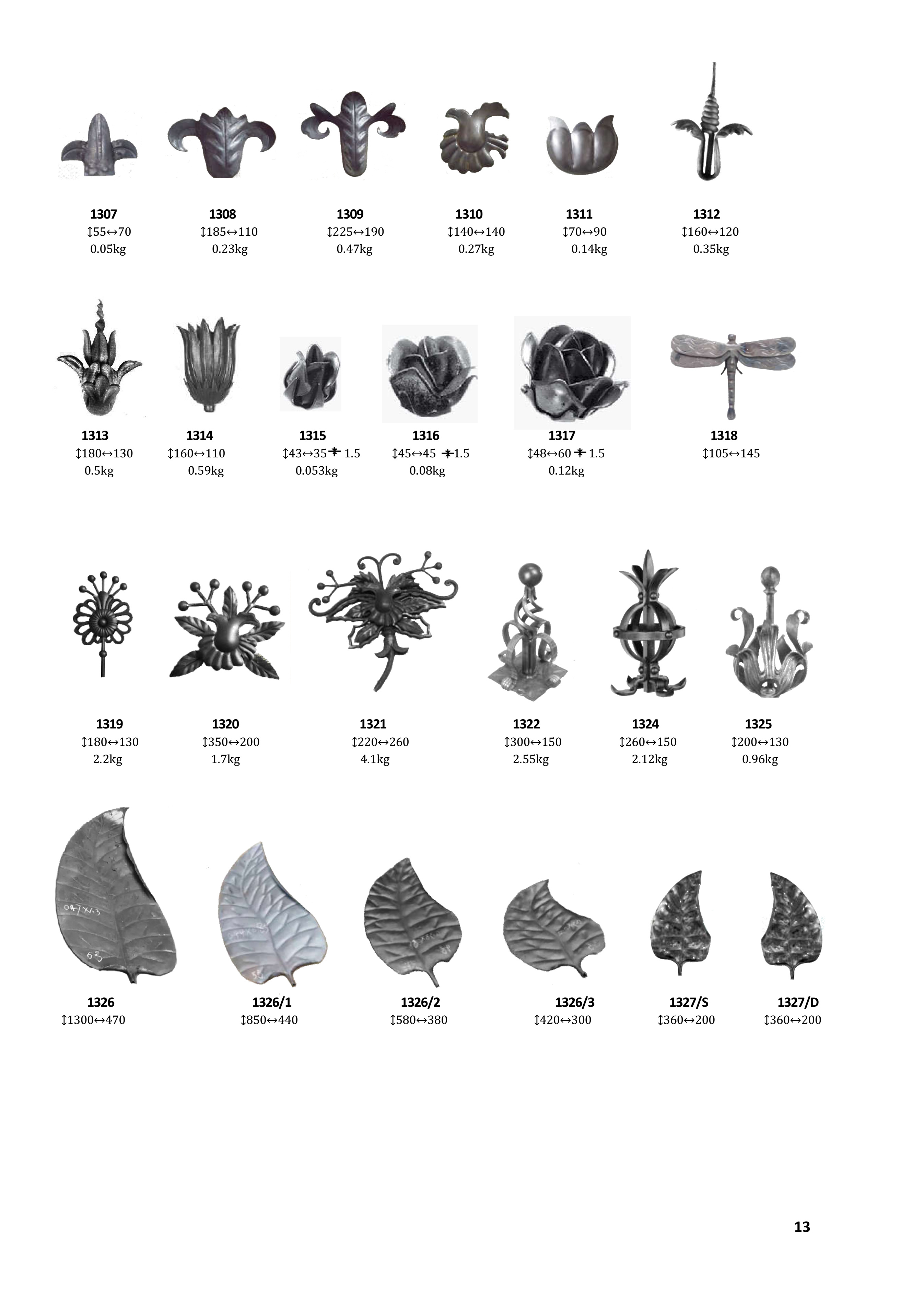 wrought iron flowers, wrought iron leaves, wrought iron baluster, wrought iron panels, wrought iron components